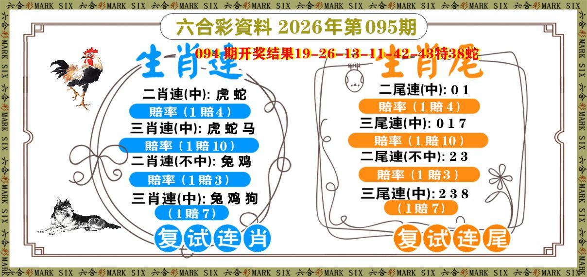 094期: 单双两肖 【单数+鸡蛇】 开38蛇准