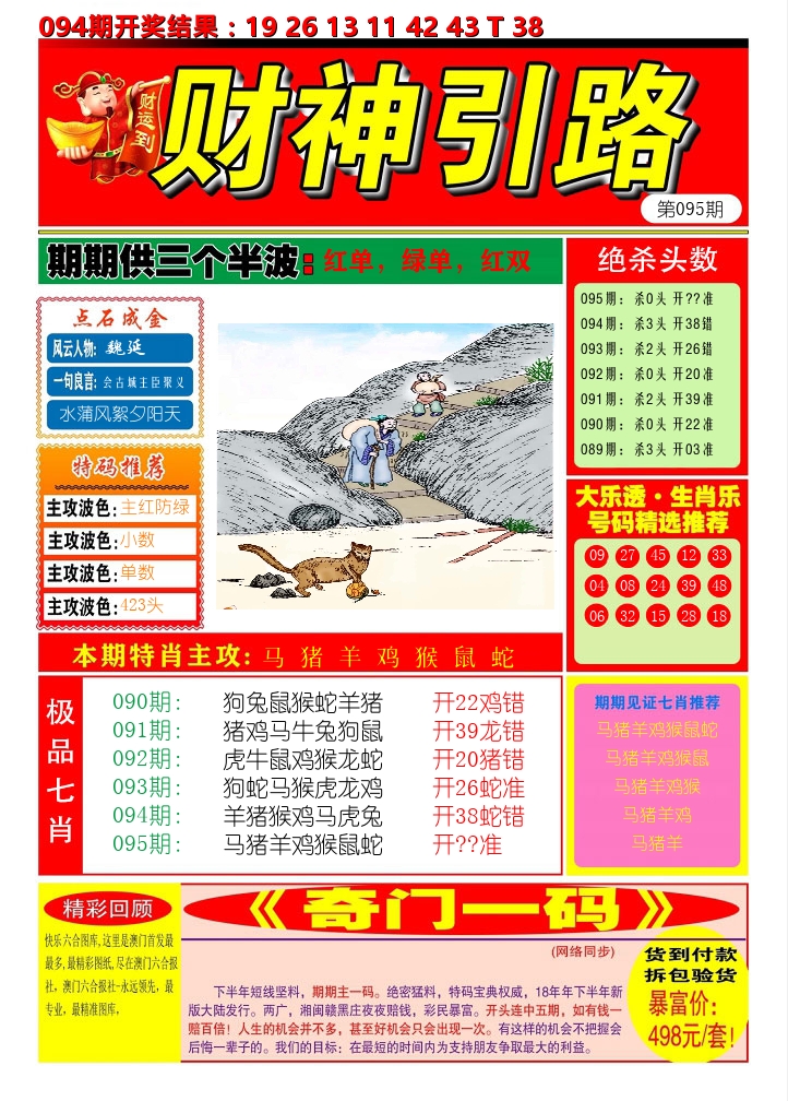 095期九肖【牛龙蛇兔马猴羊鼠猪】开 48羊 准